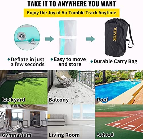 Easy to Carry & Store: Our rolling track air cushion folds and unfolds quickly. Optimum air pressure for all conditions, the tumbling pad deflates and rolls into a compact cylindrical shape, taking up much less space and making storage and transport very easy.