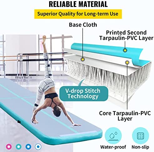 Selective PVC Material: Our air tumble track is made of double layer drop stitch 1.2 mm PVC material. Through the heat sealing process, our mats have good performance, excellent air tightness and no air leakage. You can use it with confidence. Gymnastics tumbling mats are firmer than panel mats and provide rebound and plenty of bounce.