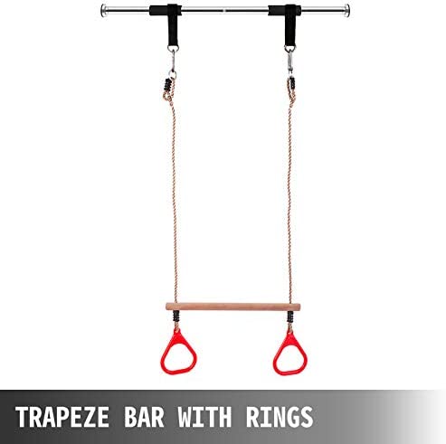 HomeApparatusHappybuy Trapeze Bar with Rings, 220lbs Trapeze Swing Bar, Adjustable 39in 300lbs Doorway Gym Bar Swing Set Trapeze Bar Trapeze Ring for Sports Outdoor Play