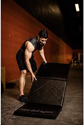 The Harbinger Tri-Fold Exercise Gym Mat features 2-inch padding for extra comfort and support during a variety of training exercises, including stretching and core work. Integrated nylon handles and folding design allow for easy transport and storage. Keeping it clean is simple with the zippered moisture-resistant cover; just wipe it down with a damp cloth and leave it unfolded until it has fully dried. The Harbinger Tri-Fold Exercise Gym Mat measures 24 x 60 inches.