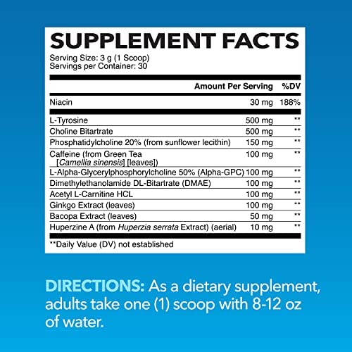 Supports cognitive function; clinically researched ingredients, including alpha-gpc, dmae, acetyl l-carnitine, ginkgo biloba, bacopa, huperzine a, natural caffeine from green tea, and more promote brain function, and provide clean energy and focus