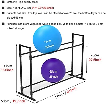 【Size】: 155×50×93 cm. The top layer can be placed above 75 cm, the bottom layer can be placed 65 cm. Can store yoga mat, wave speedball, yoga ball.