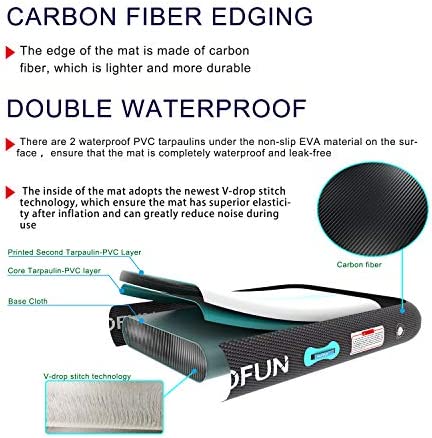 ♥ Safe Materials Waterproof Non-slip Quiet–HIJOFUN All products are environmentally friendly and health test, you and your family can safely enjoy the use.The edges adopt the newest carbon fiber material which is lighter, and long service life, it will be a reliable companion; Outer layer of mat is used of double-layer waterproof tarpaulin, better water-resistance,you can use it on the pool and on the beach;Inside made of V-drop stitch technology, better flexibility,Very quiet when used