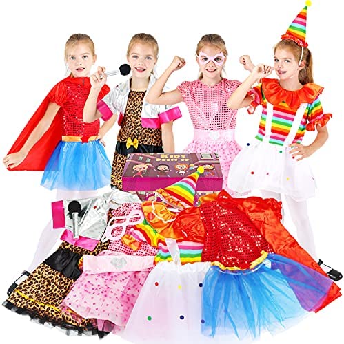 You Deserve To Look Fancy. Surprise your girls with our complete 4 different role girls fancy costume with 5 accessories! You can use your imagination with your friends to create your own different happiness, everyone is different, everyone is the protagonist, anyone can sparkling. All beautiful pretend play apparel is crafted with friendly, high-quality fabrics to ensure the most comfortable fit for your girl and long-lasting durability