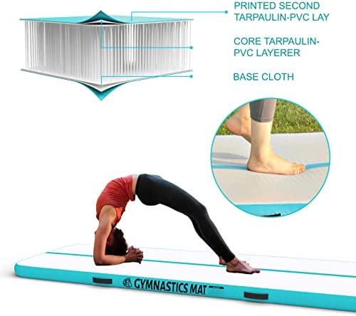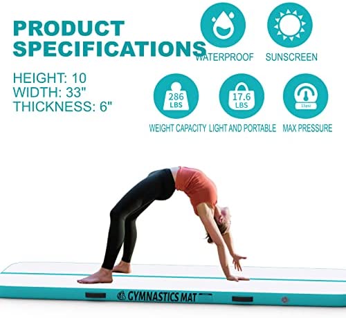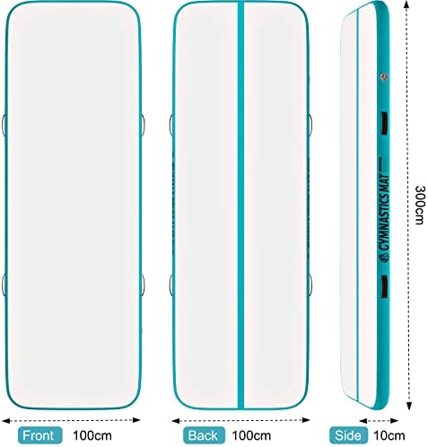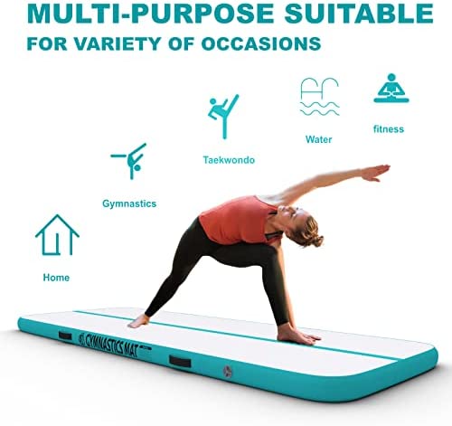 【Wide Application】you can place the gymnastics mat, air tumble track on the artistic gymnastics floor,the gym floor, in high-performance training, fitness clubs,dance clubs, schools,gymnastic exercises,home entertainment, leisure centers, gymnasium, professional training, park or rental business. Also, it could be used on beach or water,backyard, grass land .for Cheerleading/Practice Gymnastics/Beach/Park/Home use.