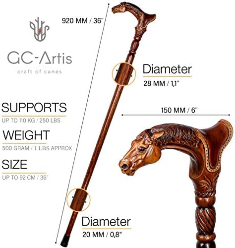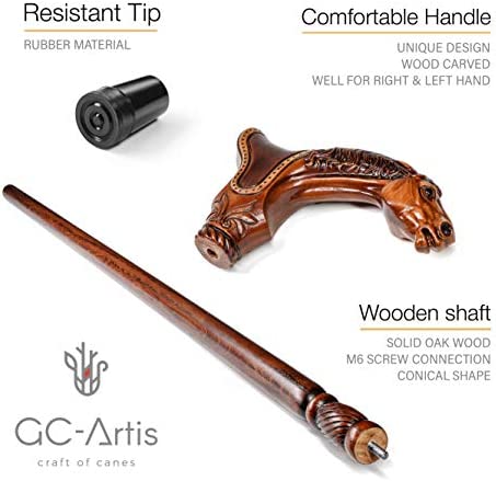 WALKING ACCESSORY FOR ART LOVERS. With your order of this gentleman’s walking cane by GC-Artis, you are buying a high-quality hand carved walking cane with a warranty period of 30 days, directly from the manufacturer. GC-Artis’ best walking stick wood Horse is an ideal gift for an elderly person or someone who is into unique and stylish accessories.