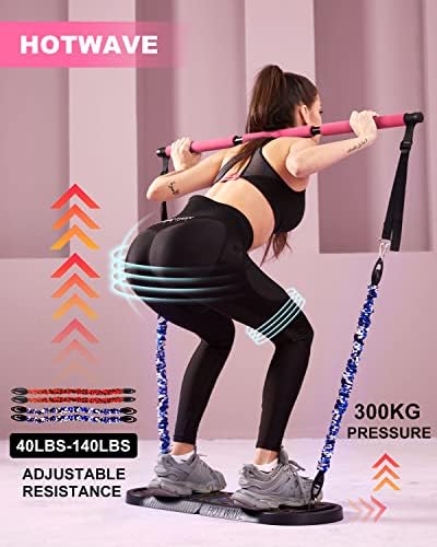 HomeMiscHOTWAVE Portable Home Gym with 16 Fitness Accessories,Pushups Board with Resistance Band,Ab Roller for Abs Workout,Pilates Bar Kit,All-in-One Exercise System for Man and Women