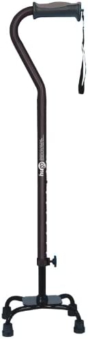 Our 4-prong cane is a strong and lightweight cane that’s built for longevity. Our height-adjustable quad canes are built to accommodate individuals between 5 feet and 6 feet 5 inches and are durable, versatile, and stylish. The Hugo mobility stick has a shock-absorbing handle complete with a reflective strap for added nighttime safety. Our small-base quad canes for women and men incorporate push buttons that provide 11 precision height settings and support up to 300 lbs. The ergonomic cane handle is designed to fit more comfortably in your hand, while the K-shaped base provides greater stability and can be rotated for left or right-hand use. Manufactured of heavy-gauge anodized aluminum to provide durability while remaining lightweight.
