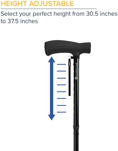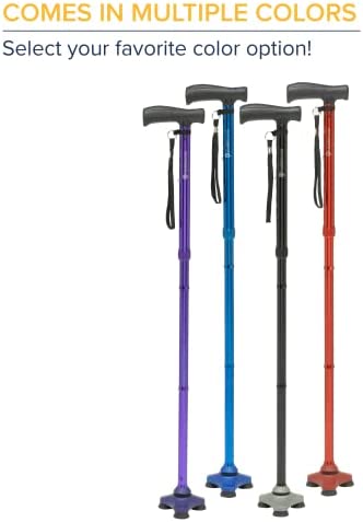 Adjustable Height: Customize the fit of this 3-prong cane by adjusting the handle height setting between 30.5″ and 37.5″; Base size: 3.5”, folded size: 13.7”