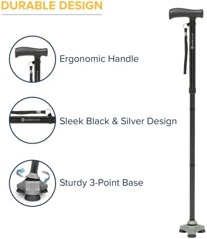 Convenient Design: This foldable cane stands on its own by your side when you need it, and folds up compactly in seconds when you’re sitting; Do not use collapsible cane if cord is cut, frayed or damaged