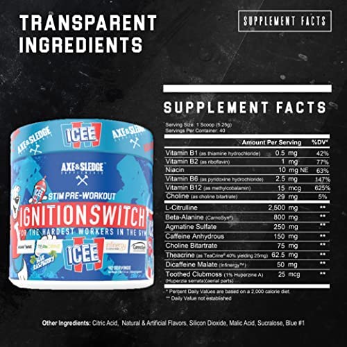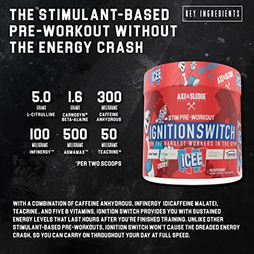 Ignition Switch contains four patented/trademarked ingredients, including Infinergy, CarnoSyn Beta Alanine, AgmaMax, and TeaCrine