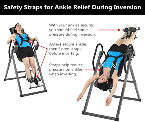 Invert your world with the ITX9800 Inversion Therapy Table with Ankle Relief and Safety Features. This inversion table is designed to help relieve pain in the leg, ankle and feet with our patent pending straps for an inversion table. It can also provide a safety measure in case of accidental slipping or falling off the table.