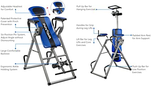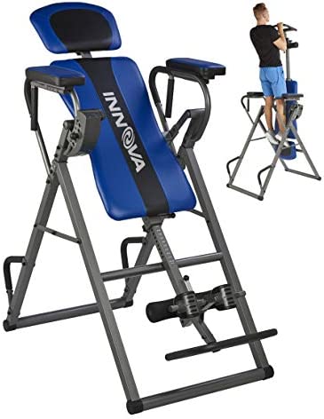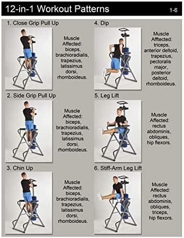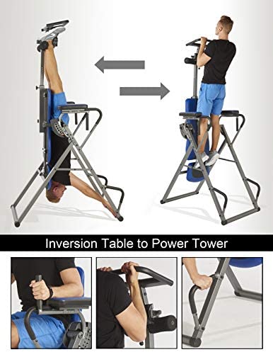 Our Innova Fitness ITP1000 12-in-1 Inversion Table with Power Tower Workout Station will be a perfect addition to your home gym! This space saving, convenience station has 12 functions in just one unit. You will be able to easily workout your body with pull-ups, chin up, dips, leg lifts, and pushups. You will be able to easily convert the inversion table into a power tower and vice versa! The inversion table features our unique 6-position inversion pin system that replaces the old style strap and easily adjusts, making varying degrees of inversion simple. Our 2-way adjustment system allows you to adjust both the Headrest and the Height Adjustment to find your perfect center of gravity for an easier, smoother inversion. The padded backrest support also provides extra comfort. This unit is made of heavy gauge steel tubing and boasts a user weight capacity of 250 lbs and accommodates users 4ft-10in to 6ft-6inOrder with confidence as this unit includes a one year. Safety Information: Consult with a licensed physician before using this inversion table. Some medical conditions may not be suitable for use with this product. Disclaimer: Although we strive to ensure all product details and information is accurate, there may be slight variations by the manufacturer. Actual product packaging and materials may vary and may contain different information than shown on our product page or website. Please do not rely solely on the information presented and be sure to read all labels, warnings, and instructions before using the product. For additional information on the product, please do not hesitate to contact the manufacturer.