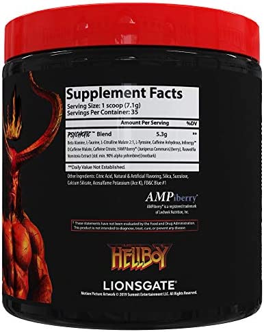 THE RIGHT HAND OF DOOM. When Hellboy goes to the gym, of course he uses Hellboy. How do you think he defeats Baba Yaga? Fully dosed with Beta Alanine to increase muscle endurance, Citrulline Malate to increase nitric oxide levels for vein bursting pumps, Infinergy to increase energy levels and stimulate thermogenesis. Last but not least, Insane Labz patented AMPiberry to smooth and absorb every last ingredient.
