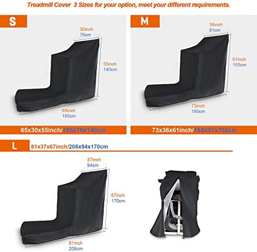 👉【Universal Treadmill Cover】3 Sizes for your option, meet your different requirements. ( Size: 65x30x55inch / 73x36x61inch /81x37x67inch) Fits most treadmill and fitness equipment, indoor/outdoor, home, gym, and other sport places. Please check your treadmill and equipment dimensions before you place the order.
