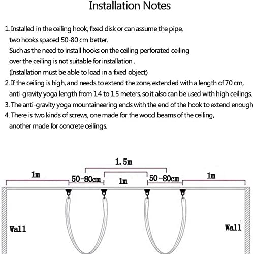 accessory 1x Yoga Hammock(5*2.8m /L*W),2x carabiners for hanging,2x daisy chains for extending(105cm*2.5cm),2 x Steel anchors for ceiling,8 x Mount screws