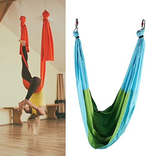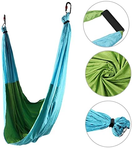 [Breathable and Durable Nylon Fabrics Material]: Yoga hammock is composed of high quality nylon fabrics material, light, wear resistant, breathable, durable, aerial silks does not fade, aerial yoga stand support comfortable and relax exercise, which can also protect your body from injury
