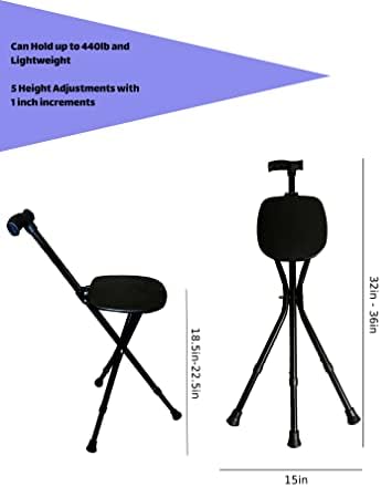 Jumbei Portable Adjustable Folding Walking Walking Stick, Walking Cane, Cane Chair, Quad Cane and Folding Cane with Seat is 36 Inches Tall, FSA HSA Eligible, and Supports up to 440 Pounds