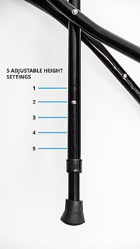 WALKING CANE is made of strong and lightweight aluminum that supports up to 440 pounds and is suggested for those 5 feet tall to 5 feet 10 inches tall. The QUAD CANE IS LEFT OR RIGHT HANDED for men or women