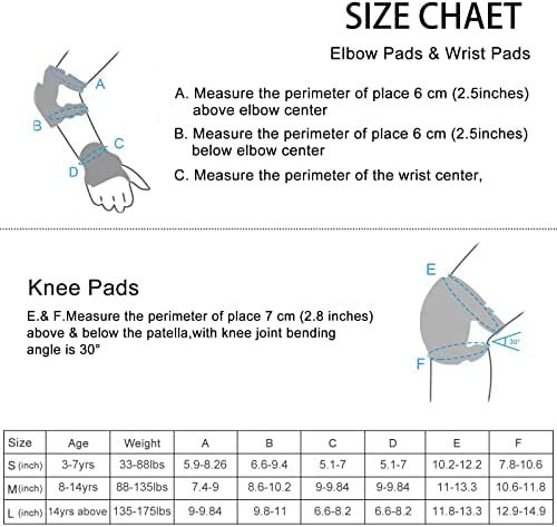 【SIZE】: S fit for age 3-7 years, weight (55-88)Ib, M fit for age 8-14 years, weight (88-135)Ib, L fit for age 14 years above, weight (135-175)Ib, protective knee pads suitable for a girl, boys, teens, women, men.These skating pads are approved by CE certification.