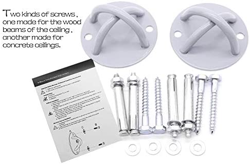 Package included:1x Yoga Hammock(5*2.8m /L*W),2x O-Ring,2x daisy chains for extending(105cm*1.5cm),2 x Steel anchors for ceiling,8 x Mount screws