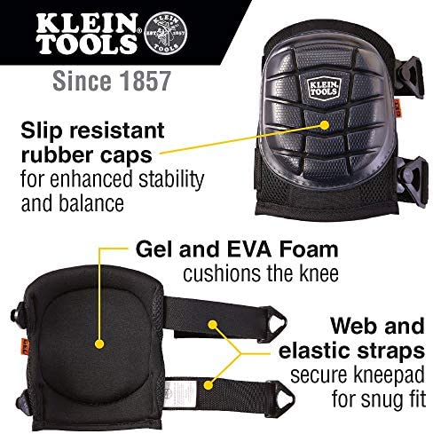 Lightweight Gel Kneepads have slip resistant rubber caps to grip kneeling surface for enhanced stability and balance. Gel and EVA foam cushions the knee to help disperse pressure while kneeling and reducing wearer fatigue. Straps cinch tight for a comfortable, snug fit. Knee pads provide stability with slip resistant rubber caps. Lightweight kneepads cushion the knee with gel and EVA Foam. Web and elastic straps secure kneepad for snug fit. Cinch-tight straps provide comfortable, snug fit. Clips hold tight and keep straps secure. For more than 160 years, Klein Tools has manufactured premium-quality, professional-grade hand tools that deliver the performance, durability and precision needed to get the job done right. Our family of engineers, workers and craftsman continue to put six generations of expertise into every tool we create by using only the highest quality materials, superior workmanship, and keeping manufacturing as close to home as we can. Klein isn’t just the name of our company, it’s also our family name. And since we’re an American company that’s family-owned and family-run, you know you can count on us to be here tomorrow. Klein Tools doesn’t just make great products, we make great products that stand up to the demands of the professionals who use them every day … Since 1857.