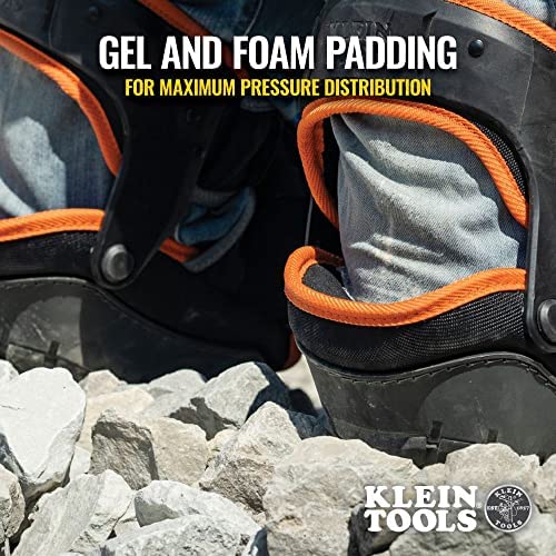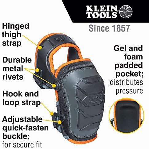 Heavy Duty Hinged Knee Pads from Klein Tools provide a durable, comfortable knee pad solution for the most rugged and tough environments. The gel and foam padded pockets maximize pressure distribution for ultimate comfort. While the large, rounded knee pad surface offers stability and agility when moving side to side for the best on the job performance. Quick-fasten buckle and hook and loop strap on top hinge and bottom ensure a secure fit. Perfect for jobsites requiring all-day heavy duty knee protection.