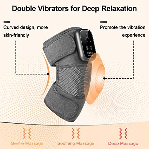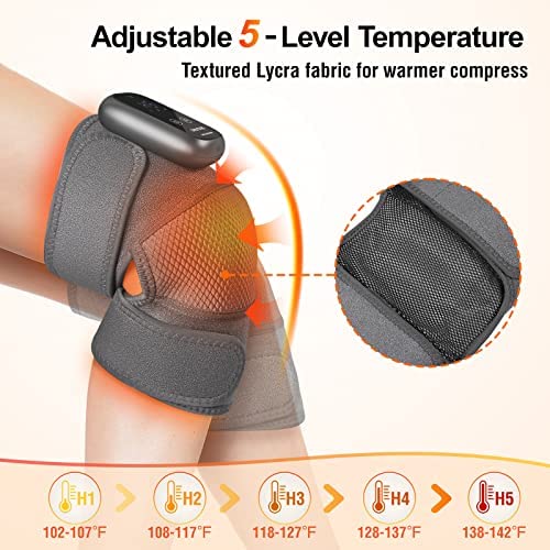 【HEATING MASSAGE】Heating knee pads provide adjustable 5 speed heating settings, fast heating, which are more functional than similar products on the market; Provides 3 modes of compression vibrating function, two powerful massage motors; Relieve joint cold, joint meniscus pain and swelling, arthritis, sports injuries, knee pain and stiffness, accelerate injury recovery.
