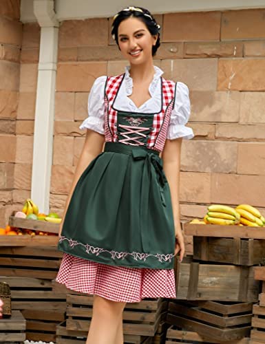 KOJOOIN Women’s German Oktoberfest Costumes 3 Pcs Bavarian Dirndl Dress