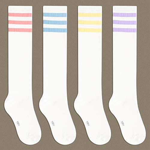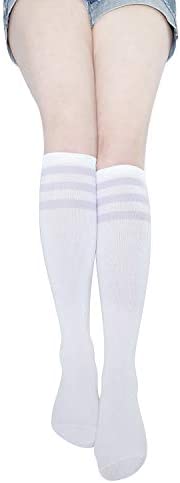 HomeApparelKONY Women’s 4 Pairs Casual Knee High Socks Soft Stretch Cotton All Season Gift Size 6-10 (Triple Stripe White)