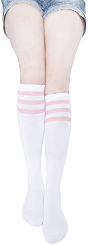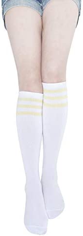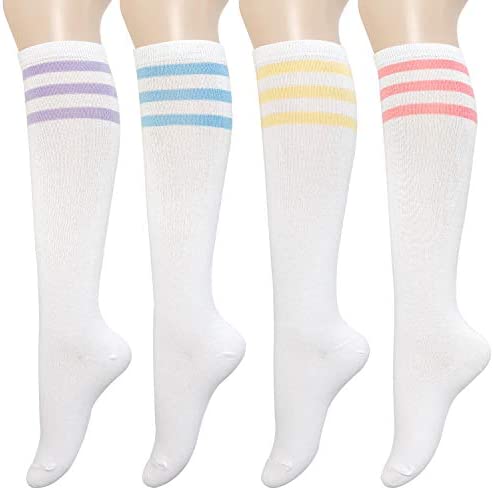 KONY Women’s 4 Pairs Casual Knee High Socks Soft Stretch Cotton All Season Gift Size 6-10 (Triple Stripe White)