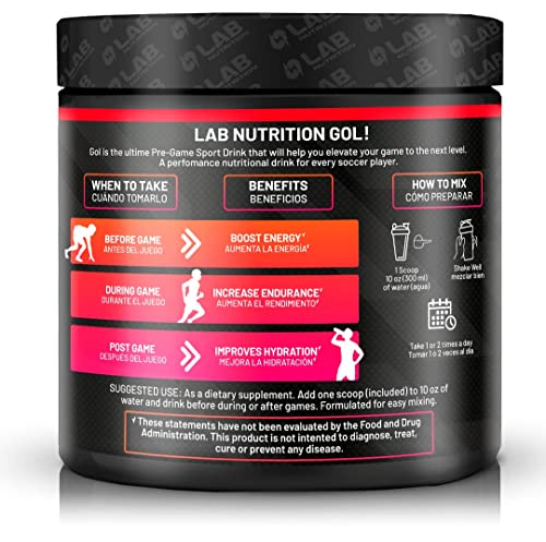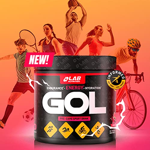 LAB NUTRITION GOL PRE-Game Energy Drink Powder, Endurance Enhancer, Improve Performance & Hydration, Gluten Free, 20 Servings| Formulated for Soccer Players and Athletes| Pineapple Flavor