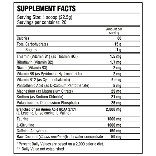 🧬 You will hydrate during your physical activity with high quality electrolytes, including coconut water, in addition to having the exact dose of branched chain amino acids (BCAA), improving your sports performance, keeping you focused