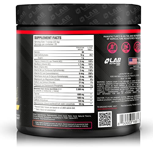 HomeSupplementsLAB NUTRITION GOL PRE-Game Energy Drink Powder, Endurance Enhancer, Improve Performance & Hydration, Gluten Free, 20 Servings| Formulated for Soccer Players and Athletes| Pineapple Flavor