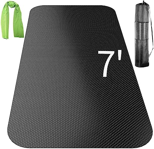 LARGE HOME GYM MAT COVERS 22 SQUARE FEET: The 84″ x 32″ large fitness mat instantly transforms any space into a professional gym, giving you and your partner more than enough room to workout on without feeling cramped, and the floor mat is even shoe-friendly, whether you’re doing cardio, yoga, weightlift, dance workout,dumbbel, jumping rope or need rubber gym mats to install underneath a treadmill or weight bench, try the exercise mats.