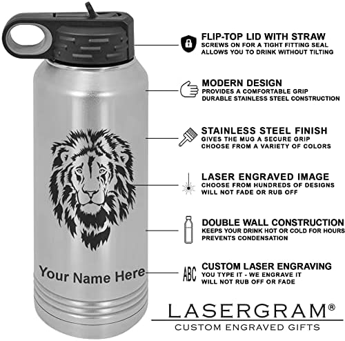 Introducing the LaserGram Personalized 40oz Sports Water Bottle that is engraved with the image that you see in the photo. Your name or custom text will be laser engraved onto the Water Bottle. The water bottle is vacuum insulated and made of double-wall stainless steel. Comes with a screw on lid with a flip-top sipping straw. Keeps your beverage hot or cold for hours. Click the “Customize Now” button to begin customizing your order.