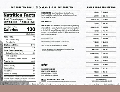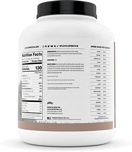 MADE IN THE USA: Levels Whey Protein is made in the U.S.A. and is undenatured to protect bioactivity and naturally occurring growth factors. Each batch is cold-process microfiltered and blended with non-gmo sunflower lecithin for that insanely easy mixing you expect.