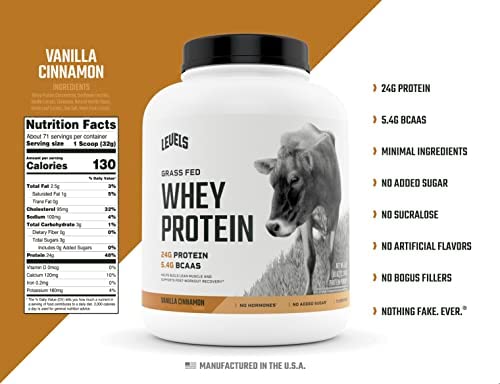 MADE IN THE USA: Levels Whey Protein is made in the U.S.A. and is undenatured to protect bioactivity and naturally occurring growth factors. Each batch is cold-process microfiltered and blended with non-gmo sunflower lecithin for that insanely easy mixing you expect.