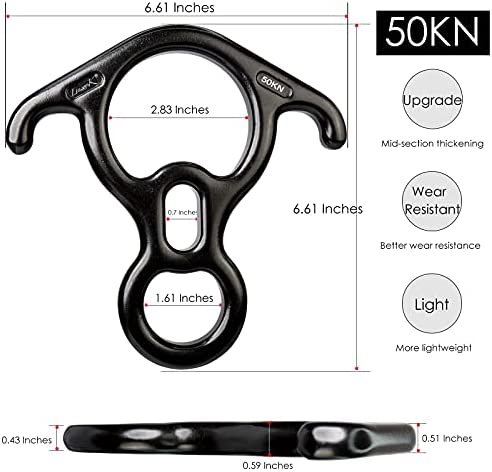 STRONG BREAKING STRENGTH – 11,000lbs (50KN/5000kg figure 8 climbing belay device, 5620lbs (25KN/2550Kg) D-Ring rappel equipment, LinsonK climbing gears have strong breaking strength to keep your safe. Using indoor and outdoor climbing, they are lightweight and portable, only 12.17oz(345g). Climbing rope compatibility: 8-13mm.