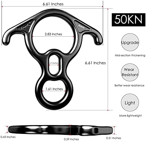 STRONG BREAKING STRENGTH –11,000lbs (50KN/5000kg) figure 8 climbing belay device, 5620lbs (25KN/2550Kg) D-Ring rappel equipment, LinsonK climbing gears have strong breaking strength to keep your safe.Using indoor and outdoor climbing, they are lightweight and portable, only weigh 12.5oz(355g).