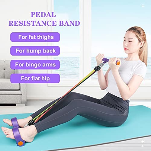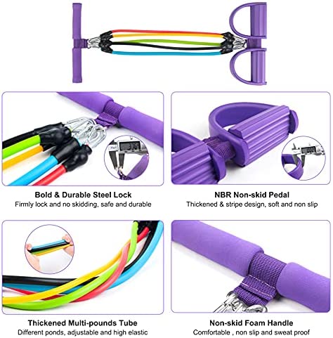 Lixada Fitness Bands Pedal Resistance Band Elastic Pull Rope 5-Tube 100lbs Adjustable Exercise at Home Gym Yoga Workout Equipment for Abdomen Waist Arm Leg Stretching Slimming Training Weight Losing