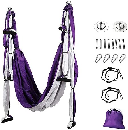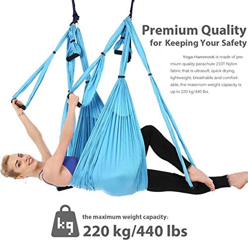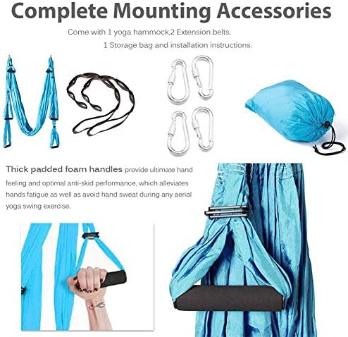 The yoga hammock features the Thick padded foam handles provide ultimate hand feeling and optimal anti-slip performance, which alleviates hands fatigue as well as avoid hand sweat during any aerial yoga swing exercise.