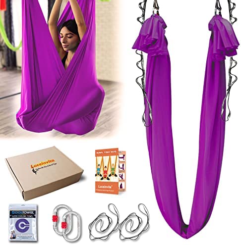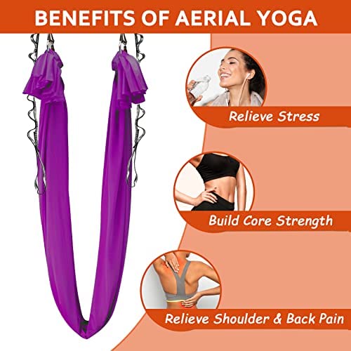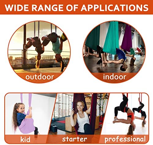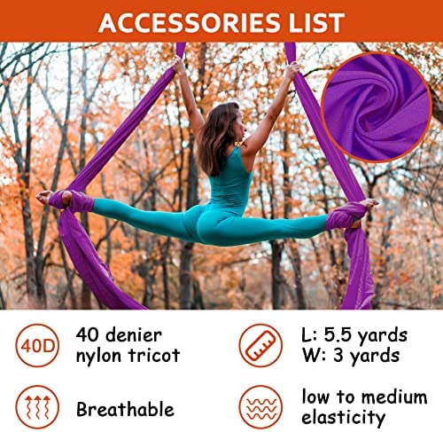 High Quality 40D Nylon Fabric: The Aerial Yoga Hammock is made of 40 denier nylon tricot with low to medium stretch. The fabric is breathable, soft and extremely durable. Premium fabric makes the yoga hammock easy to climb and provides cushioning for flips.
