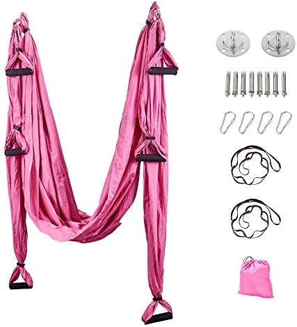 PROFESSIONAL DESIGN – Vibrantly colored and mild shimmer yoga studio quality aerial yoga swing beautifully crafted from high strength parachute material fabric; Mounting accessories are included, 4 expansion screws only for concrete structure, for wooden, please prepare 4 self-tapping screws yourself. Either way, the mount can be installed in just minutes (Professional installation recommended).