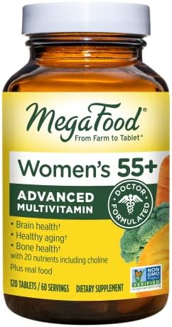 MegaFood Women’s 55+ Advanced Multivitamin for Women – Doctor-Formulated with Choline, Vitamin D3, Vitamin B12, Biotin – Plus Real Food – Optimal Aging, Vegetarian – 120 Tabs (60 Servings)