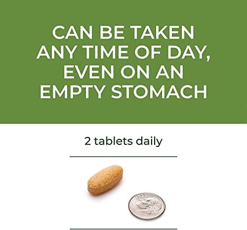 Can be taken any time of day, even on an empty stomach. 2 tablets daily