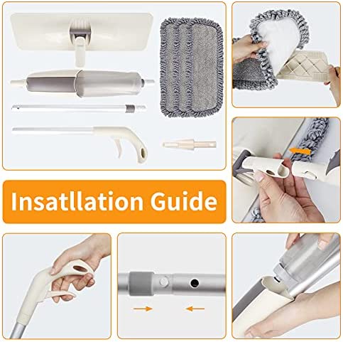 Just The Right Weight, Lightweight And Efficient – Leave the heavy messy bucket alone, refillable spray mop come with the 410ML Water tank which is a proper weight hold in hand, you could fill it up with your favorite cleaner, just make sure clean the water tank when you finished the cleaning, and do not add hot water in it. Simply push the trigger on the handle, it turns water to water mist evenly, save water and make mopping efficiency with minimize efforts than the regular mop.