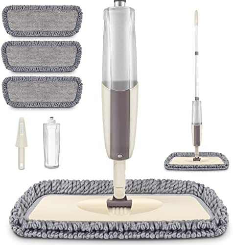 MEXERRIS Microfiber Spray Mop for Floor Cleaning – Wet Dry Dust Kitchen Floor Mop with 410ML Refillable Bottle 360°Rotatable Hardwood Mop for Laminate Wood Tiles 3 Reusable Pads and 1 Scrubber