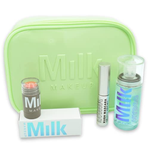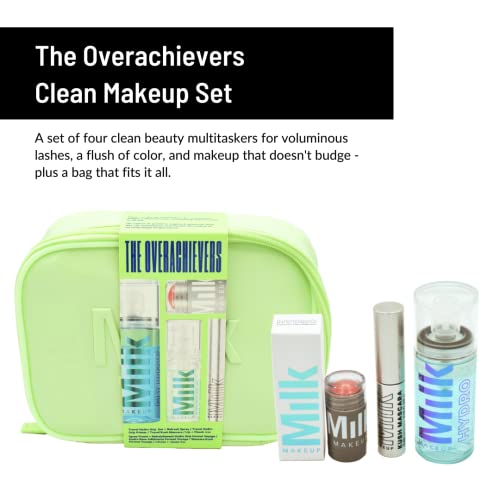 A set of four clean beauty multitaskers for voluminous lashes, a flush of color, and makeup that doesn’t budge—plus a bag that fits it all.