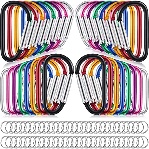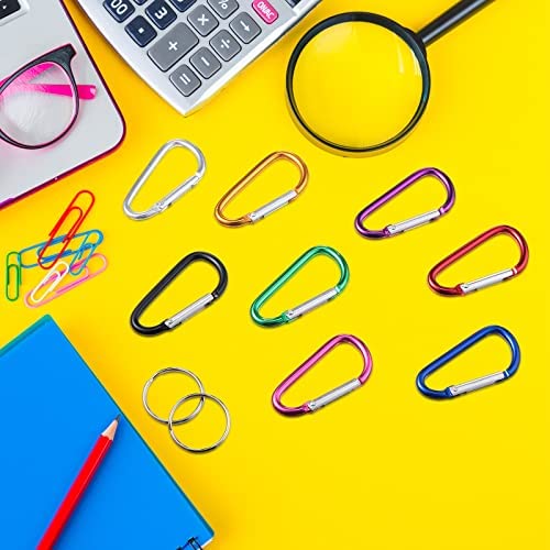 HomeRiggingMini Carabiners Clips 88 Pcs 1.8 Inch Key Clip Aluminum D Ring Metal Carabiners Keychain D Shape Spring Loaded Gate Hook with Key Rings for Home Camping Traveling Backpack Hiking